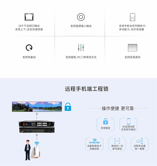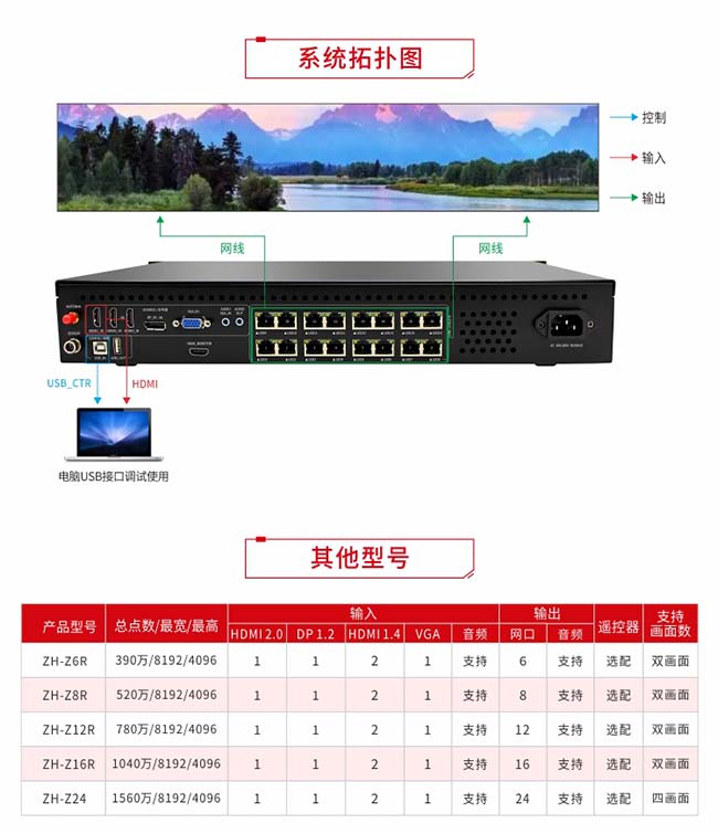 解決方案:ZH-Z16R十六網(wǎng)口4K多畫(huà)面二合一 + 戰狼接收卡,完美呈現。