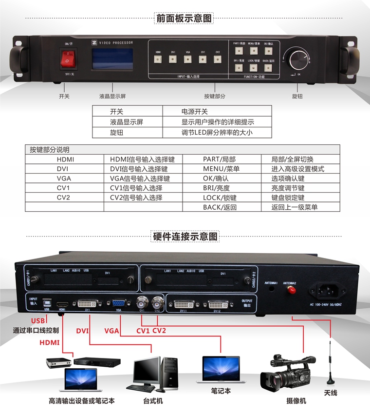 7) 智能鎖鍵:⒈菜單鎖模式:僅開(kāi)放信源切換按鈕,處理器參數不可調,防止客戶(hù)誤操作導致處理器參數錯亂。⒉全鍵鎖模式:鎖定所有按鈕,防止誤觸 。