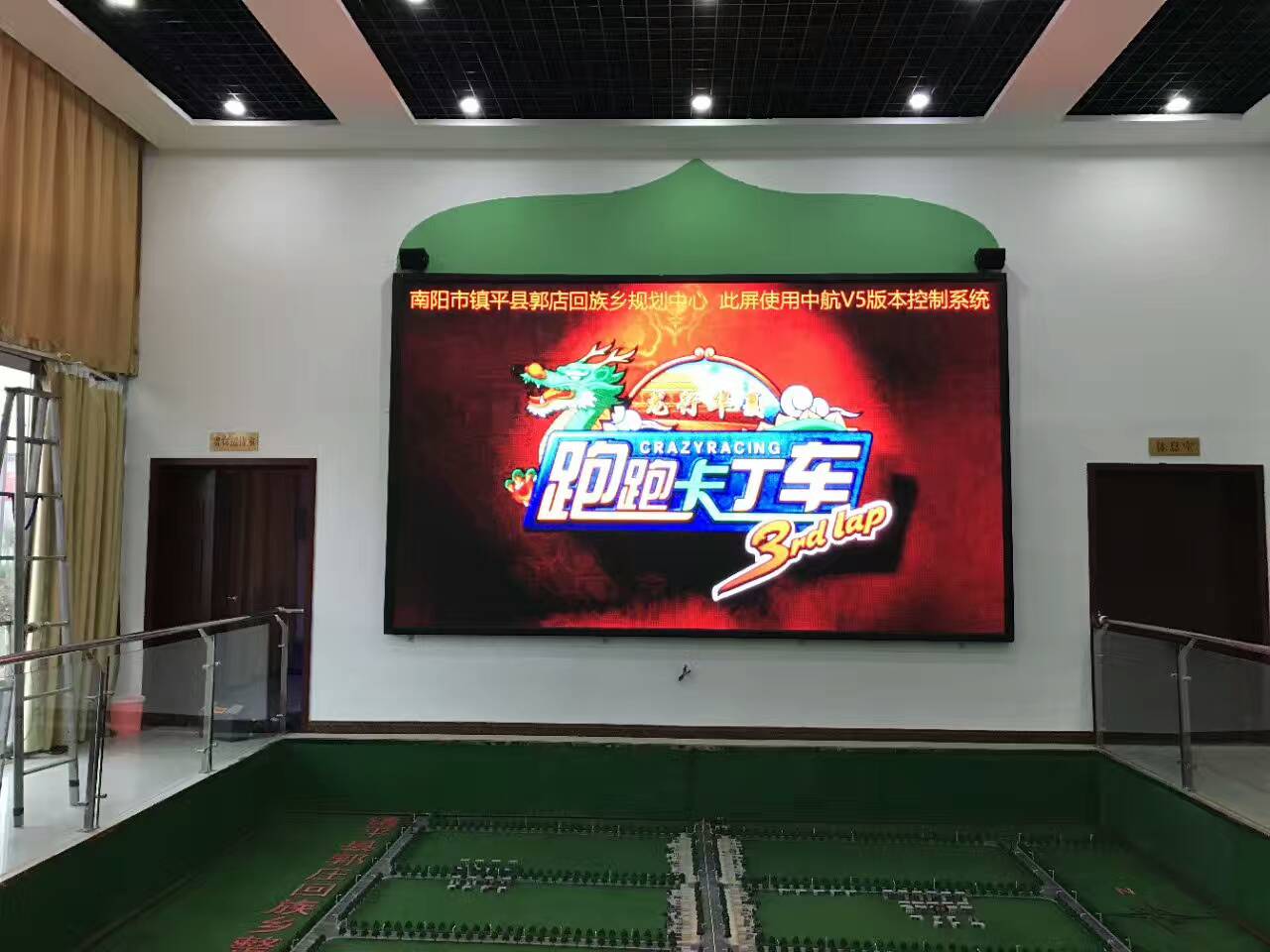 中航全新V5,打造全彩控制系統新格局!南陽(yáng)市鎮平縣郭莊鄉規劃中心,戶(hù)內P4十六掃,單卡最大帶載256*352,中航全新V5完美帶載!