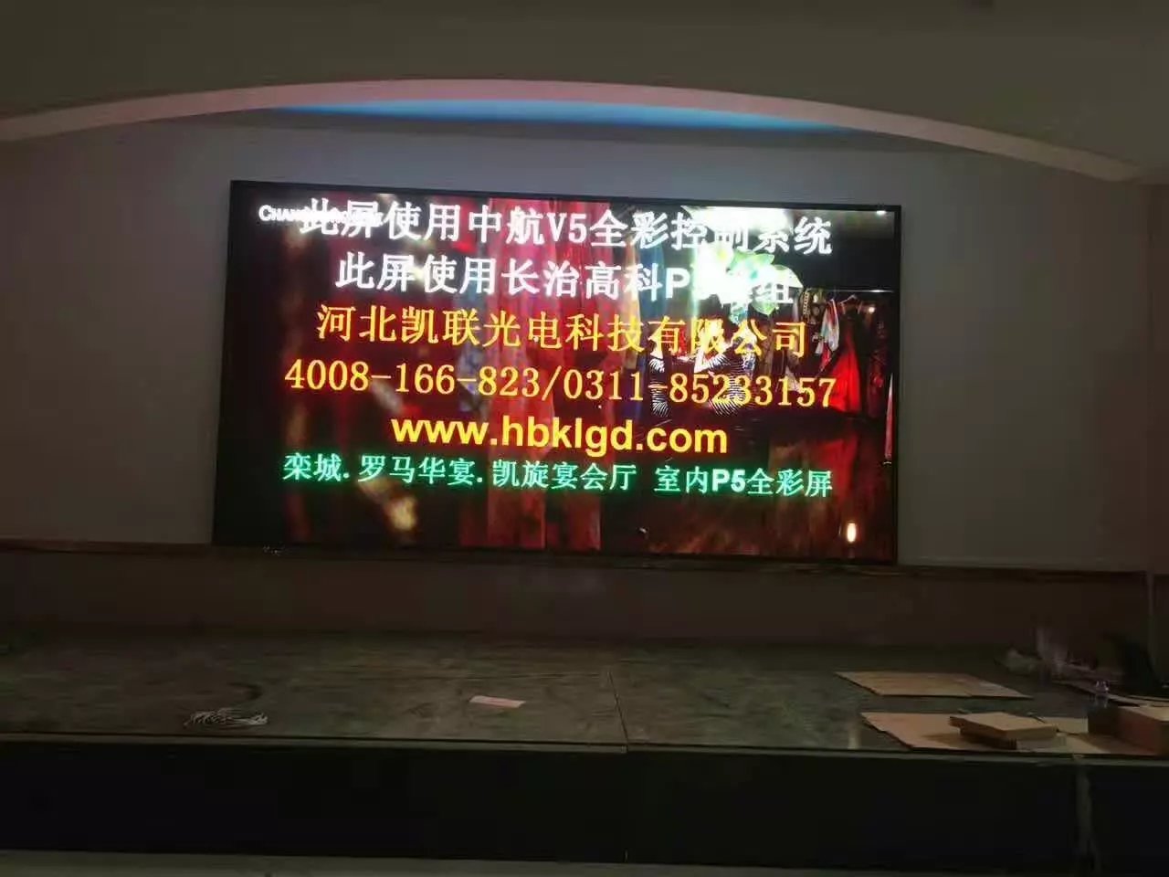 石家莊欒城區羅馬華宴:米蘭、凱旋、金門(mén)三個(gè)宴會(huì )廳,戶(hù)內P5單卡帶載288*192,中航全新V5完美帶載,效果杠杠滴!