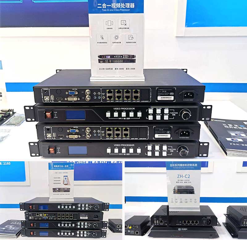 此外,中航還向大家展示了二合一視頻處理器,同異步三合一主控,全彩系列播放機控制系統等多系列產(chǎn)品。